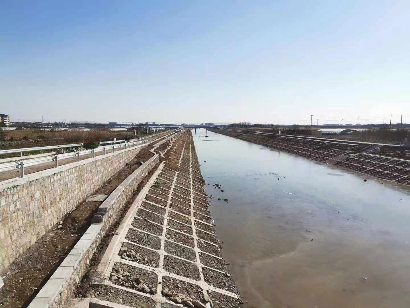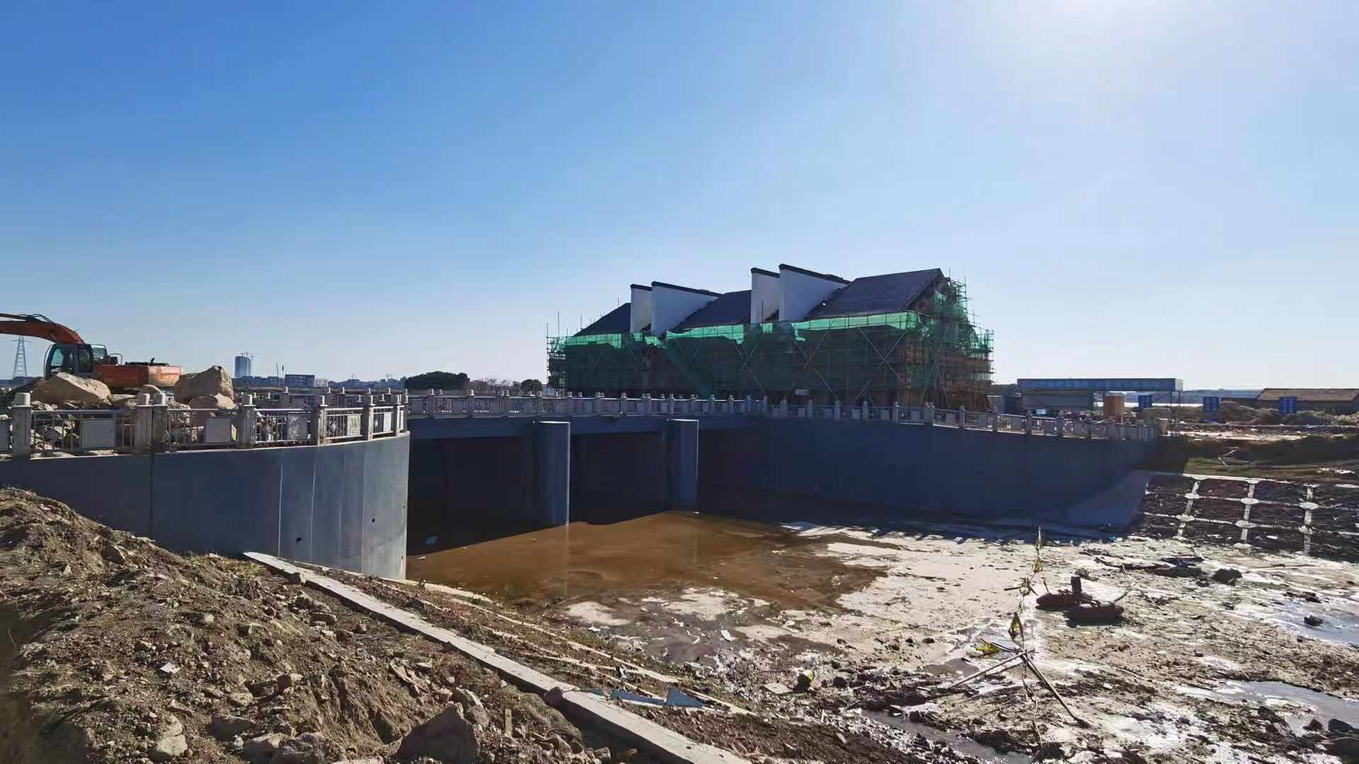 截止12月底,進場道路填筑累計完成15900米,占合同工程量的100%;河道土方疏浚累計完成約122.0萬方,占合同工程量的97.8%;護岸累計完成17307米,占合同工程量的94.7%;節制閘完成下部主體結構,金屬結構安裝完成,閘管理房完成框架及屋頂施工;西二環交通橋和馬潭南路交通橋完成橋板鋪裝澆筑,周勝線交通橋完成梁、柱澆筑;跨江橋11座完成蓋梁等下部結構澆筑,其中10座完成橋板鋪裝澆筑;其余機耕橋、箱涵、涵管等設施同步推進中。年度完成投資20024萬元,占年度投資計劃的111%,超額完成年度投資任務,累計完成投資50625萬元。