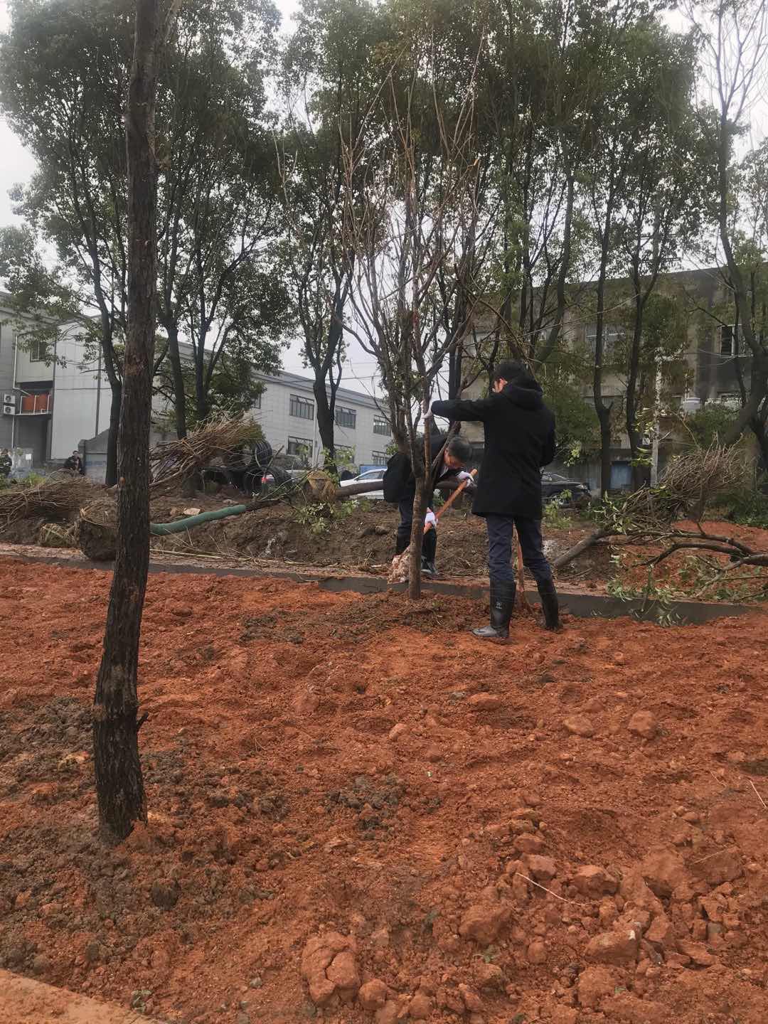 天空中飄落的綿綿細(xì)雨,未能阻擋全體職工的高漲熱情,大家準(zhǔn)時(shí)到達(dá)指定地點(diǎn),分配好任務(wù),由集團(tuán)黨委書(shū)記陳午同志帶隊(duì),同志們來(lái)到各自的區(qū)域三至四人一組,開(kāi)始植樹(shù),盡管地面潮濕,土地泥濘,同志們抗的抗、挖的挖、鐵鍬輪流傳遞,你累了我來(lái),我累了你來(lái),節(jié)省了力氣節(jié)約了時(shí)間,一個(gè)又一個(gè)的樹(shù)坑很快全部挖好,大家把一顆顆樹(shù)苗載進(jìn)挖好的坑中。
