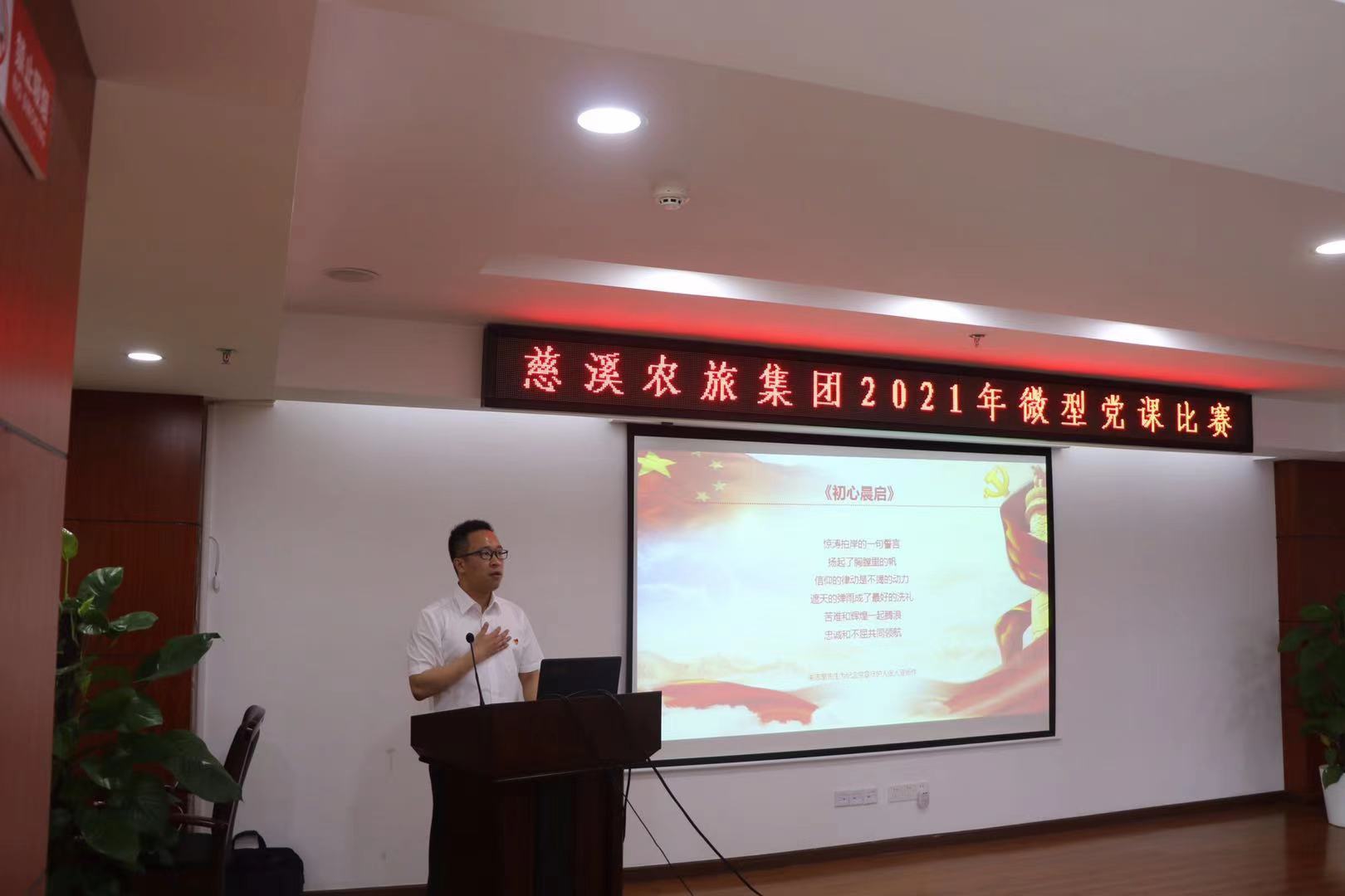 為貫徹落實習(xí)近平新時代中國特色社會主義思想和黨的十九屆五中全會精神,歡慶中國共產(chǎn)黨成立100周年,推動黨的創(chuàng)新理論走深走心走實,慈溪農(nóng)旅集團(tuán)于5月13日,舉行“奮斗百年路 啟航新征程”微型黨課比賽。集團(tuán)全體在編干部職工,各子公司負(fù)責(zé)人,市中部三塘橫江拓疏工程(陸中灣至水云浦)臨時黨支部人員現(xiàn)場聆聽黨課。