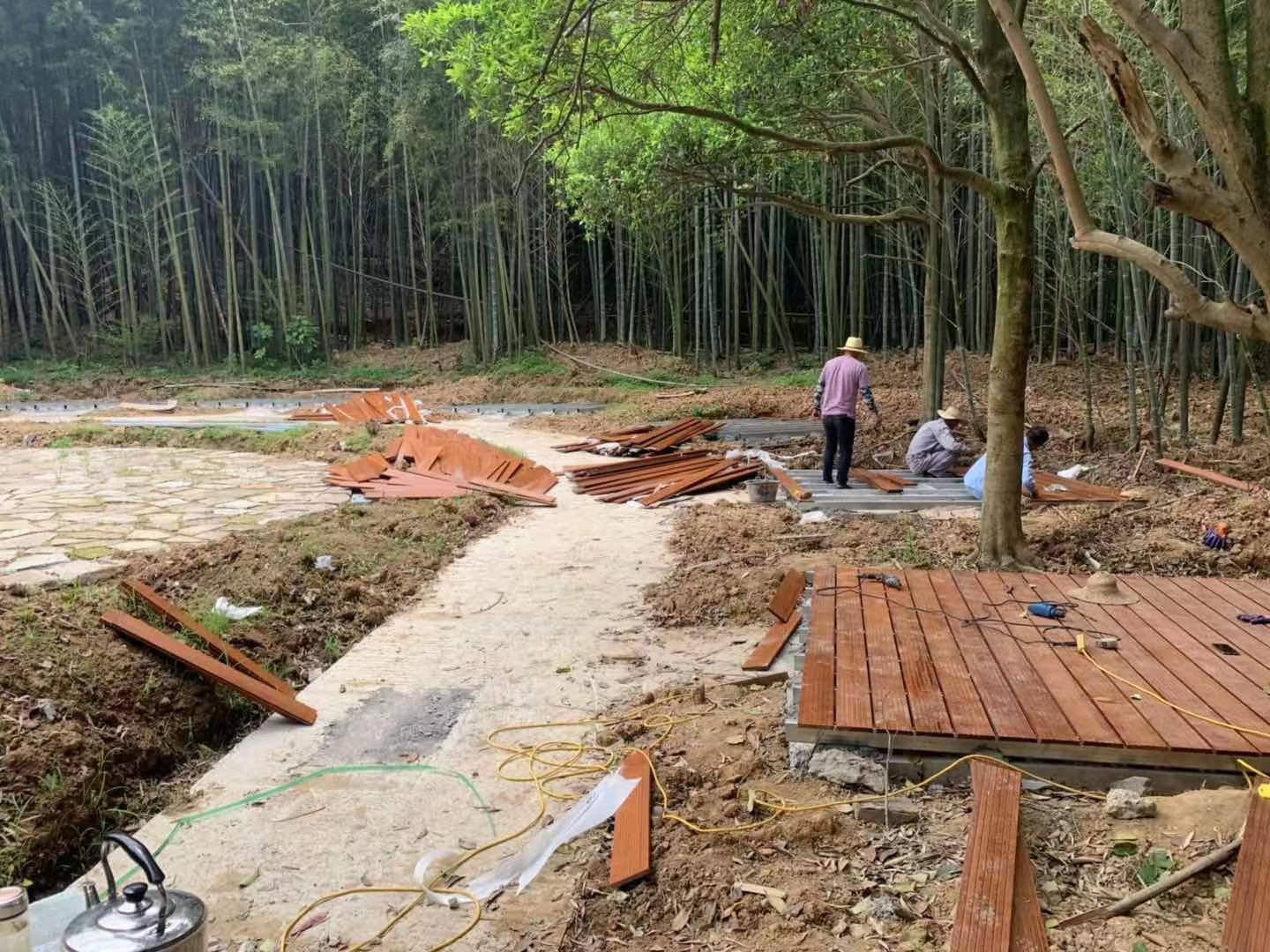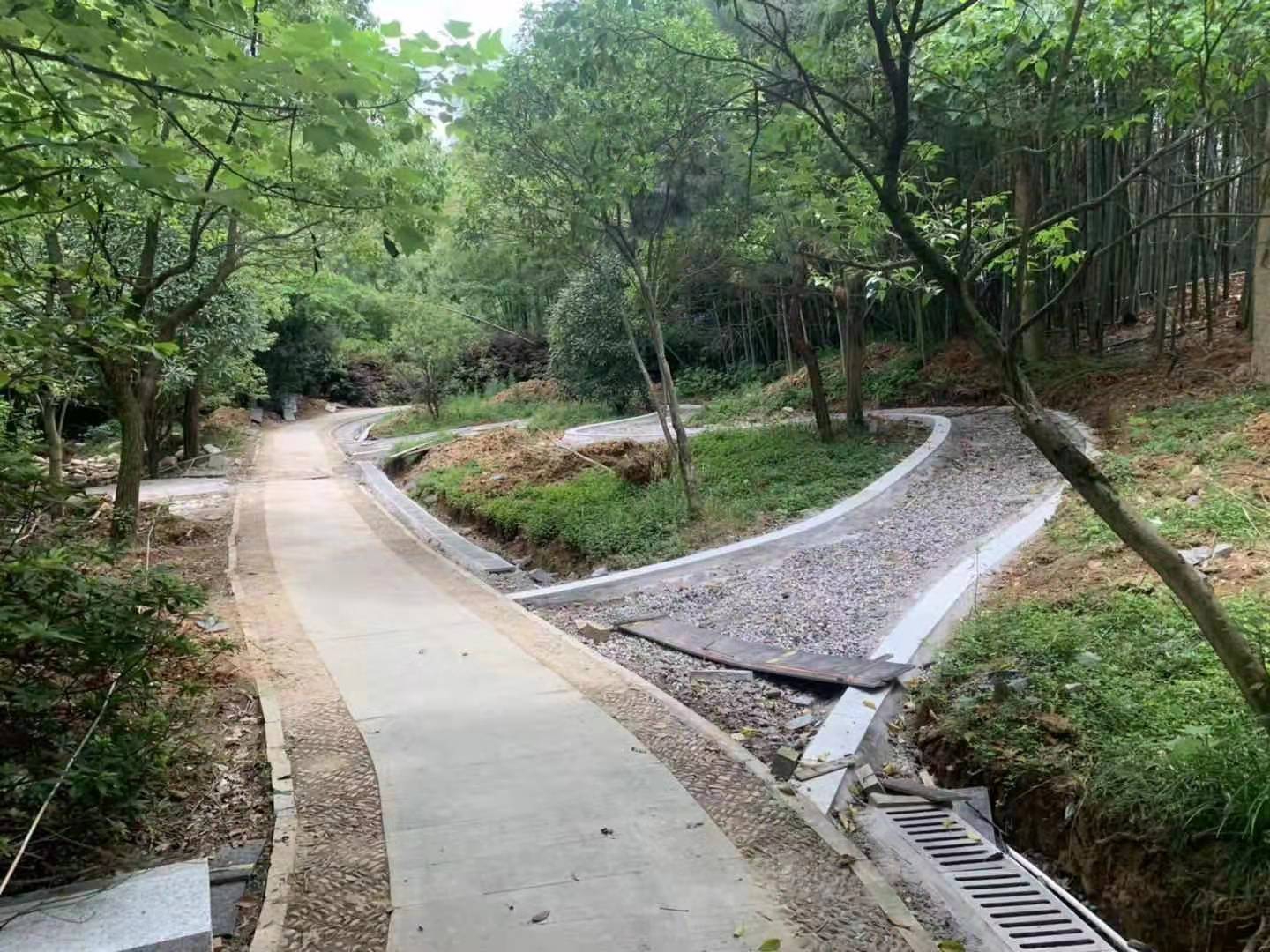 該工程投資約6252303元,由寧波如春園林工程有限公司承建,工期約180天。截止目前已完成講經臺80%工程量,野營地50%工程量,山頂景觀臺60%工程量,竹編墻60%工程量,踩水花廊45%工程量,林中棧道40%工程量等,各項工程子項目有序進行中。