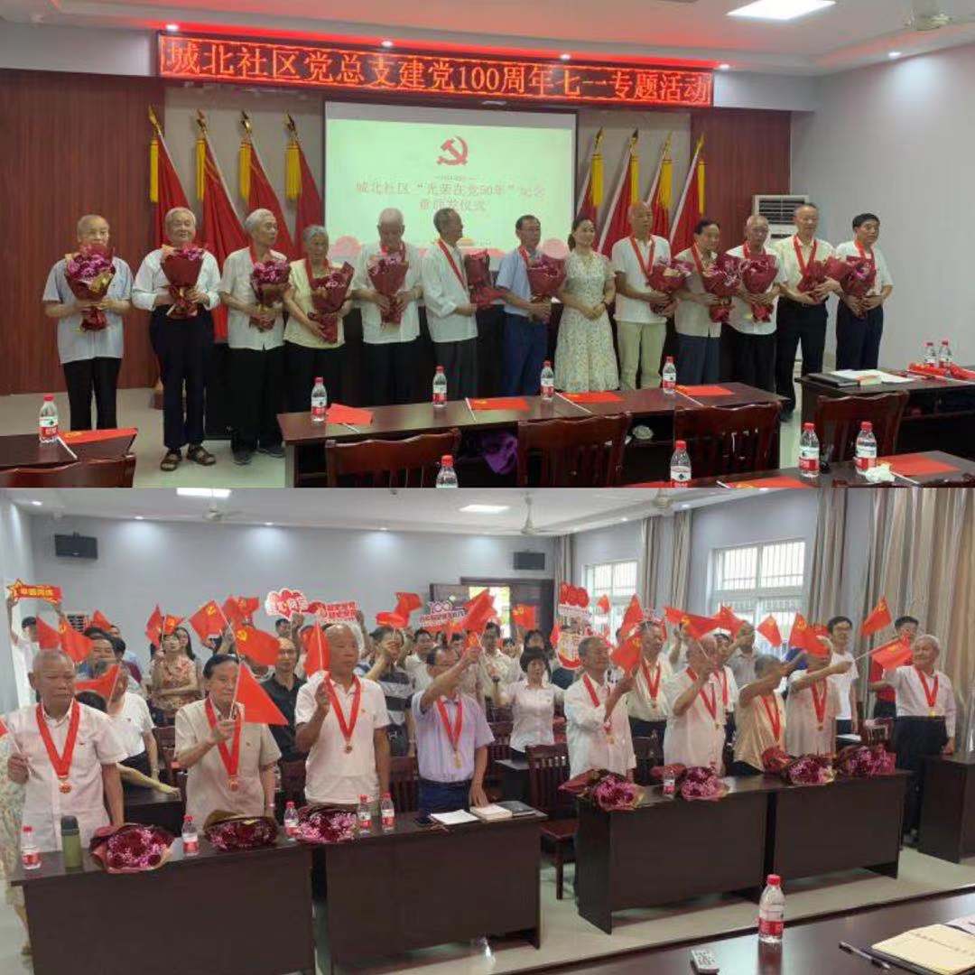 6月29日上午,農旅集團聯合古塘街道城北社區開展建黨100周年迎“七一”專題活動,城北社區光榮在黨50年老黨員及其他黨員同志、集團各支部代表參加活動。