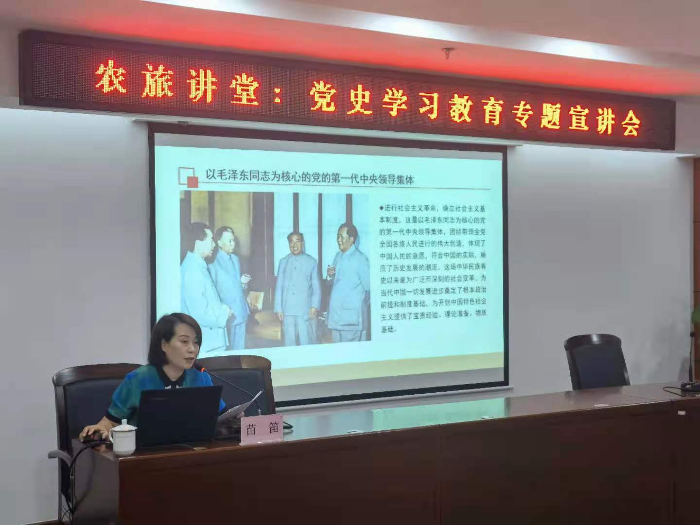慈溪市國資國企理論宣傳服務隊隊長苗笛同志應邀作主題宣講。苗老師以《從百年奮斗歷程中汲取信仰力量 在推動國資國企改革發展實踐中砥礪奮進》為題,全面回顧和總結了中國共產黨百年奮斗的光輝歷程和歷史性貢獻,深刻闡述了開展黨史學習教育的重要性和必要性。