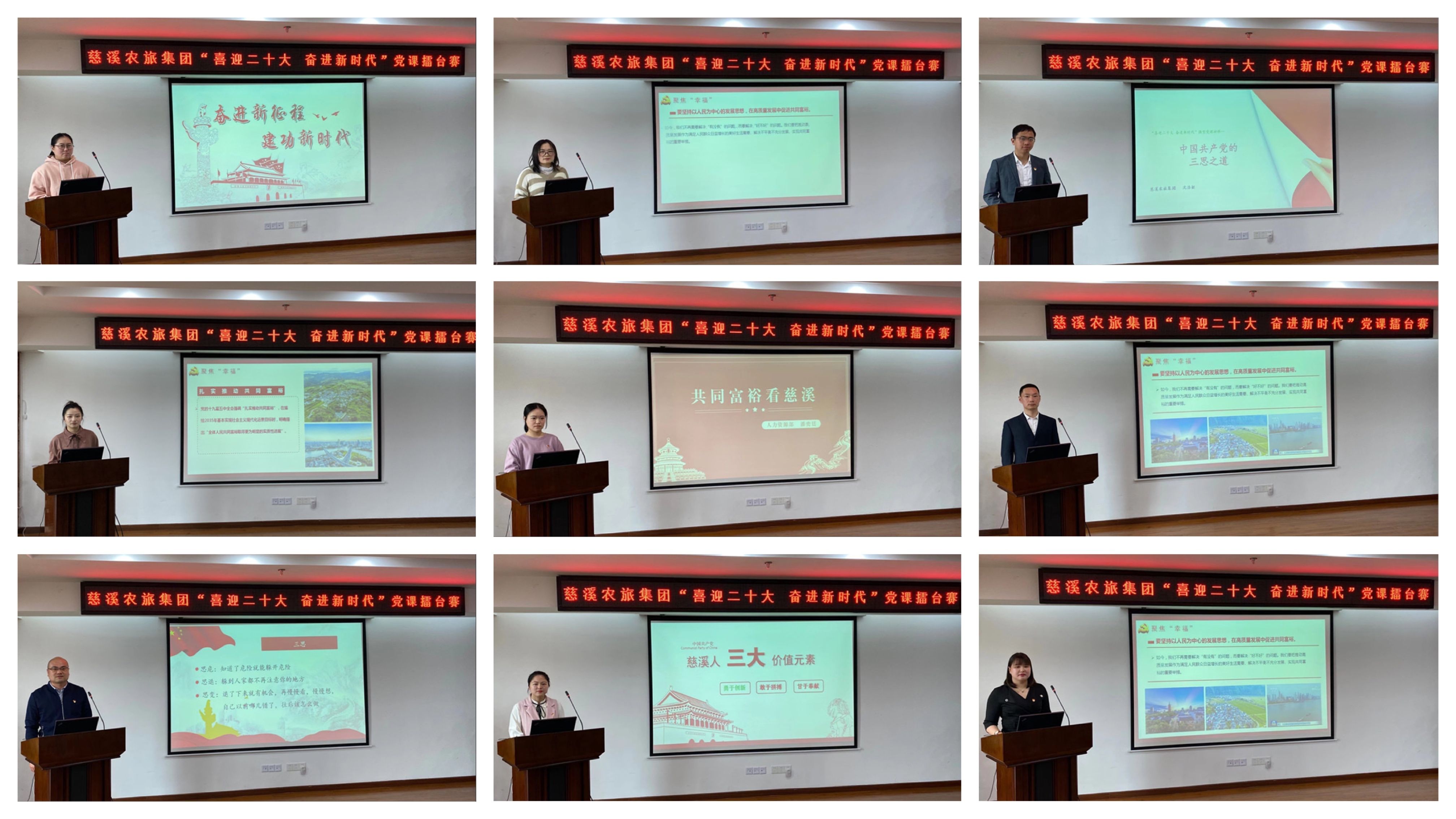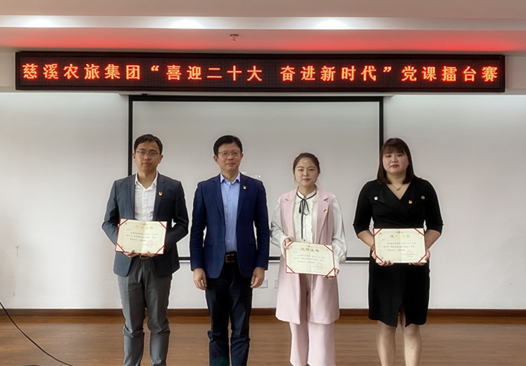 為貫徹落實習近平新時代中國特色社會主義思想,營造“擔當作為比作風、爭先進位賽業績”的濃厚氛圍,激勵廣大黨員干部以昂揚的姿態喜迎黨的二十大,3月30日上午,慈溪農旅集團舉辦“喜迎二十大 奮進新時代”黨課擂臺賽,來自集團下屬各黨支部的9名選手走上講臺,為大家帶來了一場精彩的微黨課盛宴。