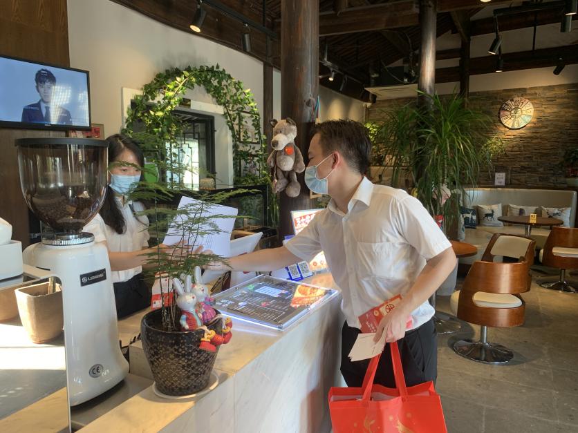 此次活動采用發放宣傳冊、現場咨詢等方式將法律知識帶給古鎮商戶及游客,向群眾普及日常生活中相關的法律知識,廣大黨員同志冒著近40度的高溫,頭頂炎炎烈日,走進商鋪,向商戶發放《民法典》漫畫手冊,讓《民法典》走到群眾身邊、走進群眾心里。在宣傳法律知識的同時也向群眾推廣數字人民幣的作用與應用,耐心解答商戶關心的問題。