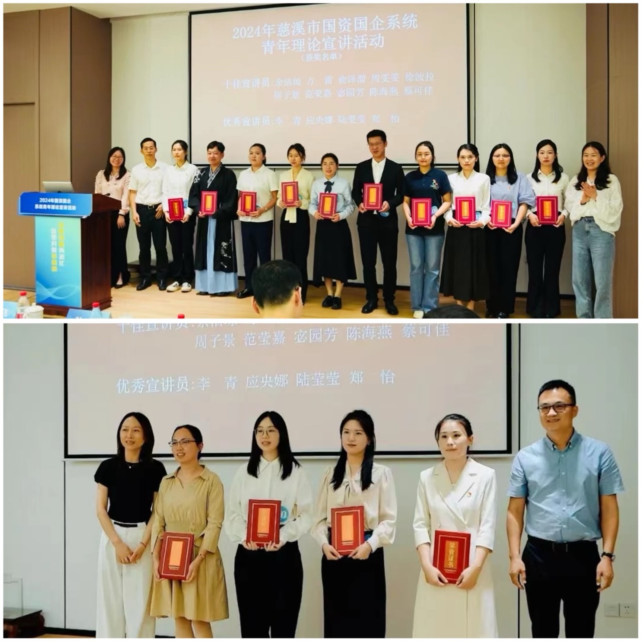 經過兩輪激烈角逐,最終,慈溪文旅集團下屬子公司福溪養老服務有限公司宓圓芳獲得十佳宣講員,慈溪文旅集團下屬子公司應央娜獲得優秀宣講員。