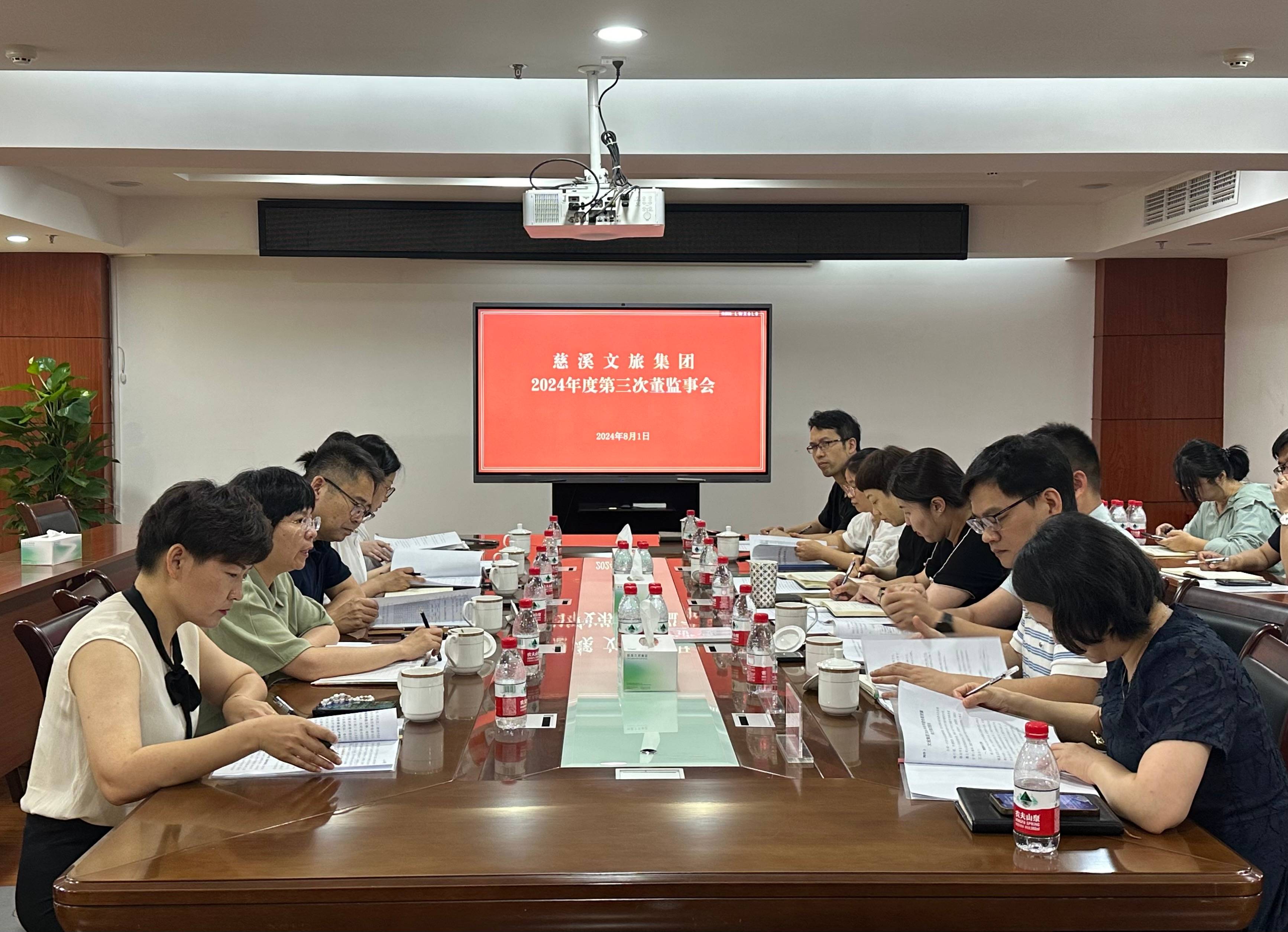 2024年8月1日上午,慈溪文旅集團在集團九樓會議室召開2024年度第三次董事會。集團董事會全體成員出席會議,集團監事會全體成員、集團高級管理人員列席會議,會議由董事長潘曉曉主持。