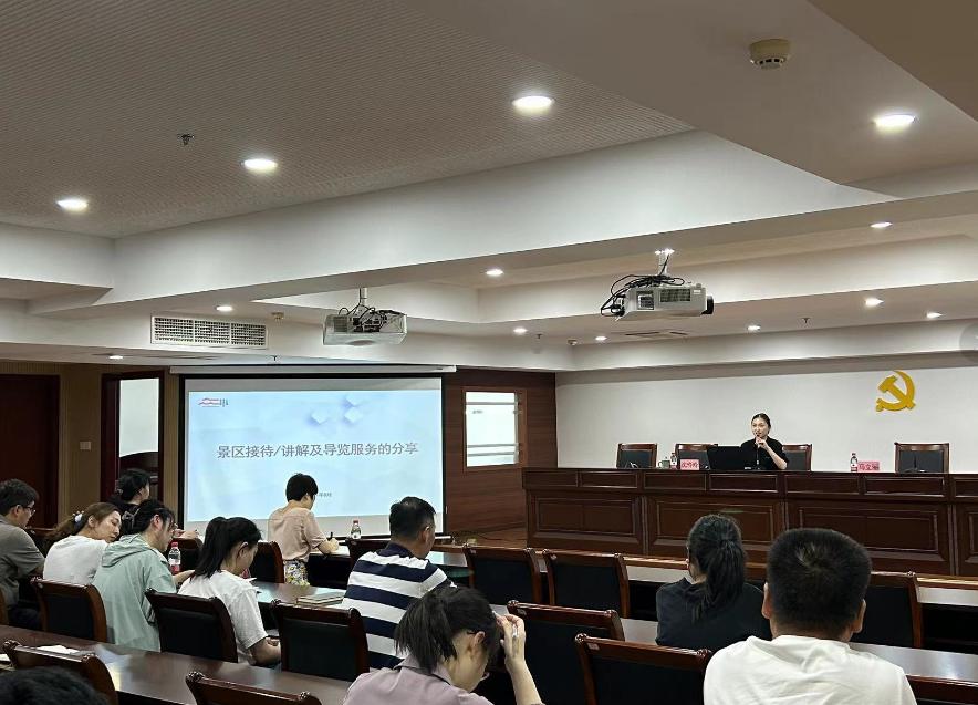 會上,集團下屬上林湖青瓷傳承園客服部經理沈玲玲結合實際作了景區接待講解及導覽服務經驗分享。她圍繞“快樂、努力、認真、挑戰”,為大家分享了培養一名優秀的導游的過程。在要求儀容儀表端莊大方、言談舉止文明親切的前提下,新增了新時代對于導服人員的新要求。如專業知識儲備豐富、創新思維活躍、團隊協作緊密等,從“聲音、情緒、互動、知識和臨場反應”五方面出發,提升溝通技能和技巧,逐步成長為高素質講解員和導游。集團下屬子公司有眾多景區服務人員,此次經驗分享極大地激發了大家的學習積極性。大家紛紛表示,要學以致用,要將理論學習轉化為工作實效,用心用情用愛來提升講解水平,為游客帶來高質量的服務,不斷提升游客的體驗感和滿意度。