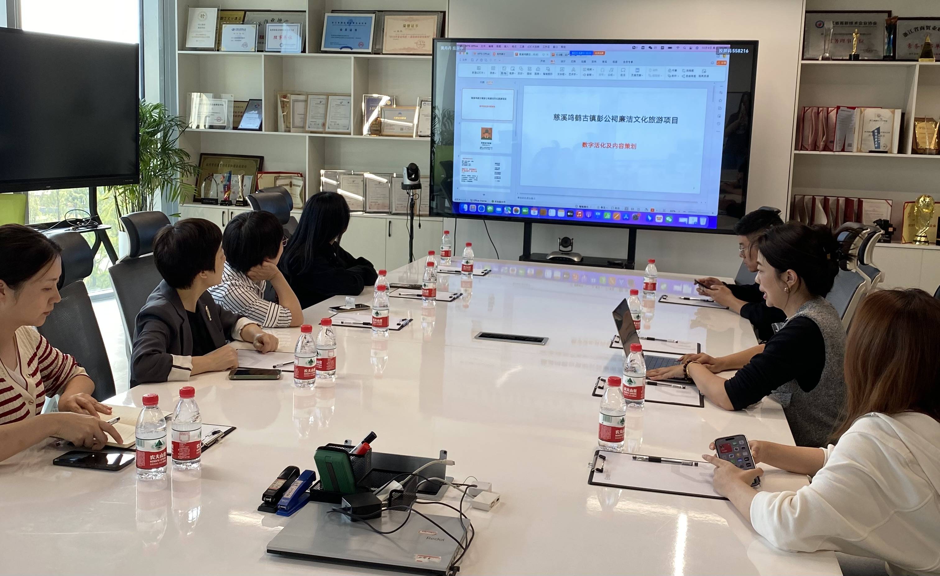 學習過程中,由臉臉網絡科技有限公司VP黃丹丹整體介紹了臉臉科技相關情況,著重展示了各種最新的線下場景流量運營平臺,體驗了娛樂類、社交類、電商類、服務類等實體操作。雙方還召開了座談會,集團紀委書記馬立麗就集團“清慈廉旅”線路首發及創意作了介紹,并就數字廉旅工作進行了交流。