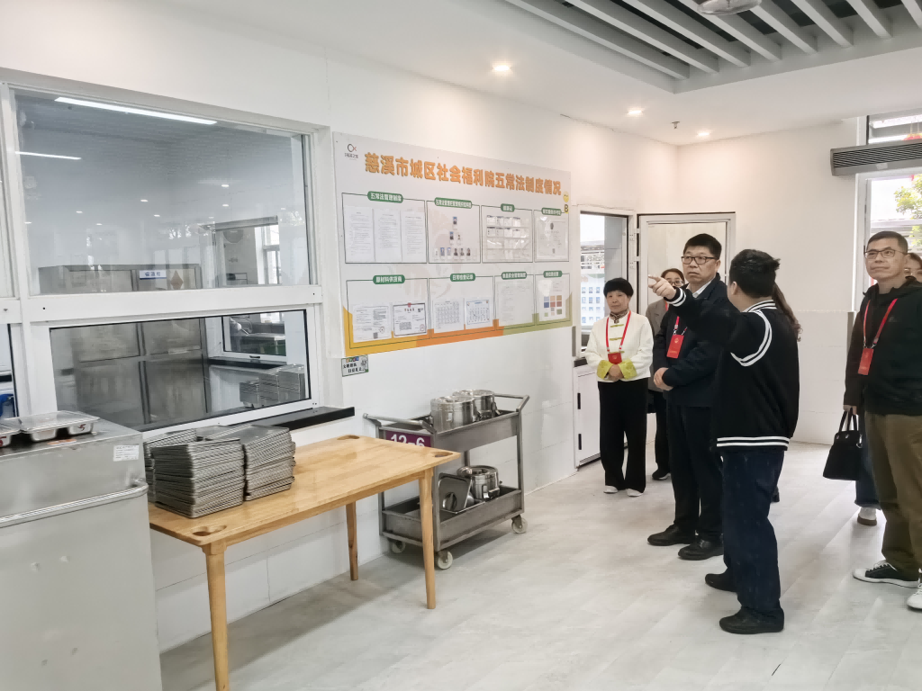 寧波市人大代表慈溪中心組第二代表小組一行聽取相關負責人介紹院內服務內容、功能設置、運營模式,詳細了解了養老院建設、特困人員集中供養等工作落實情況。并實地參觀了接待大廳、食堂等區域,重點參觀了認知障礙區,對里面的硬件軟件設施進行了解。