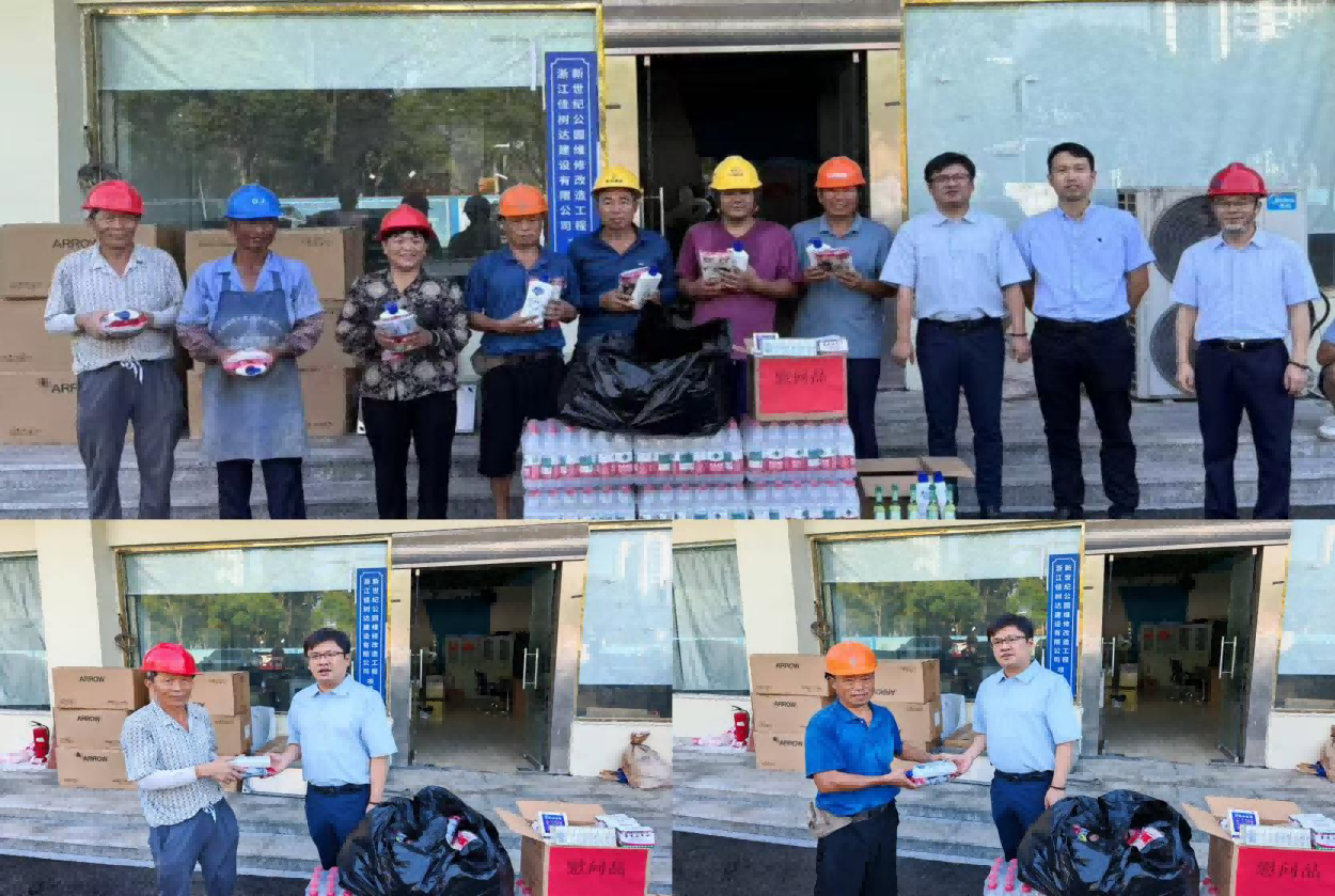 慰問組來到項目工地,向堅守崗位的施工人員表達敬意,詳細詢問了他們的工作情況,并送上了防暑降溫物資,包括毛巾、藿香正氣水、沐浴露等,叮囑施工人員在高溫環境下工作要注意勞逸結合,做好防暑措施。