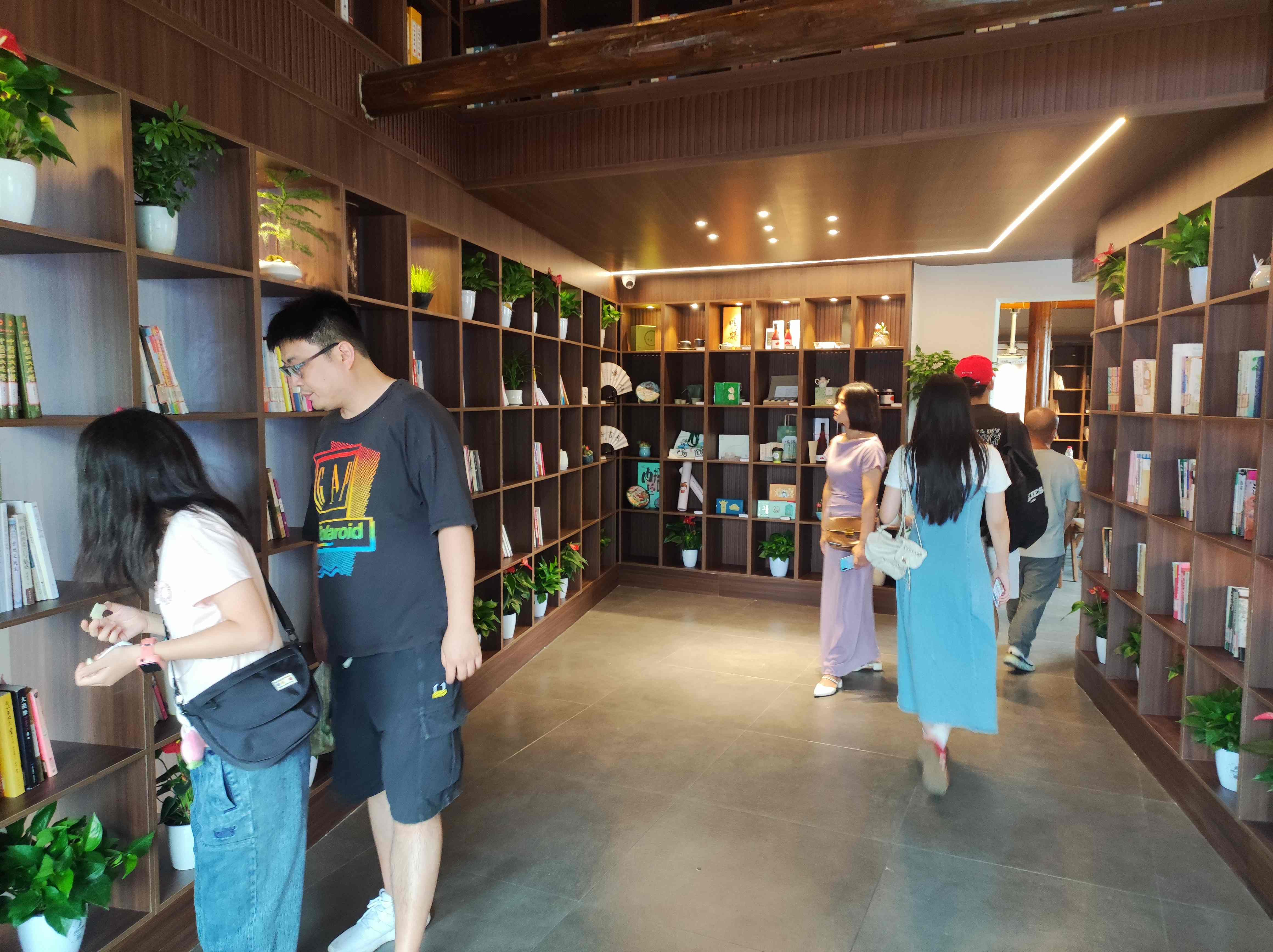 鳴鶴書房作為古鎮新的網紅打卡點,既為游客提供了一個“慢下來、靜下來”的場所,也豐富了古鎮的旅游業態,文創產品的創新更加大了游客對鳴鶴古鎮歷史的探究與認知。