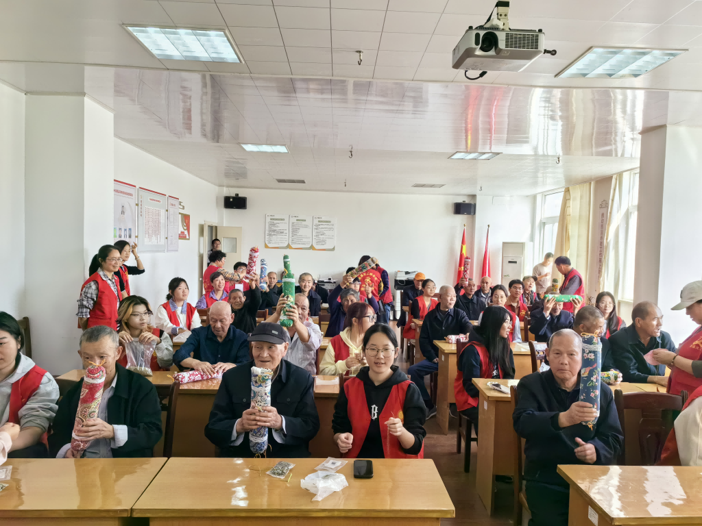 手工活動結(jié)束后,志愿者們又將精心準備的慰問品一一送到每位老人手中。這些看似平常的物資,承載的是社會對長者實實在在的牽掛與心意。