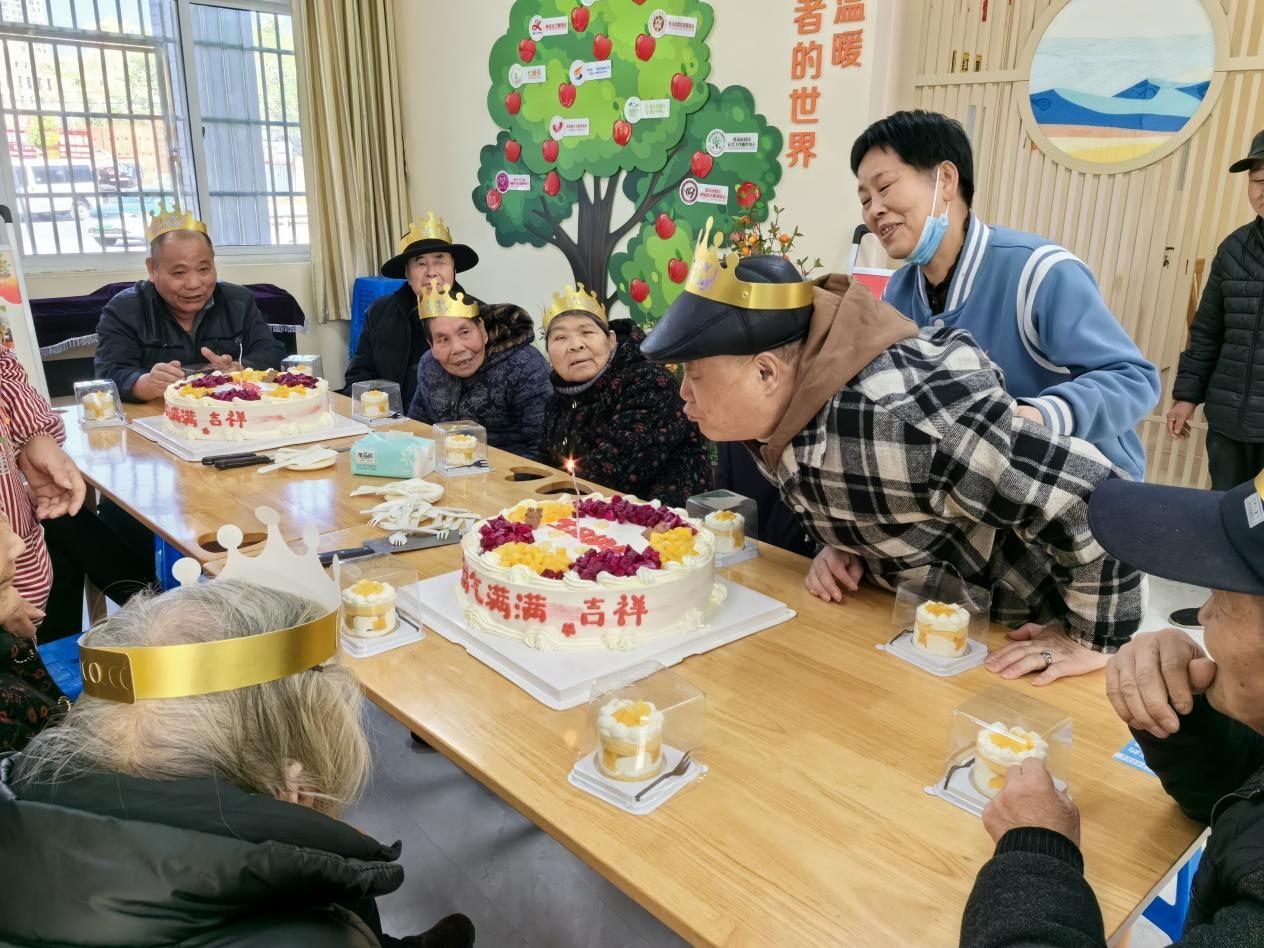 這是屬于每一位壽星的高光時刻。我們精心布置會場,當“生日快樂”的旋律悠然響起,當月的老壽星們被請到中央就座,戴上生日帽。在全院老友和工作人員《生日快樂歌》的合唱中,他們許下心愿,吹滅蠟燭,臉上洋溢著孩子般純真而幸福的笑容。這不僅僅是一個儀式,更是一份鄭重的告白:您的歲月,我們珍視;您的生日,我們記得。