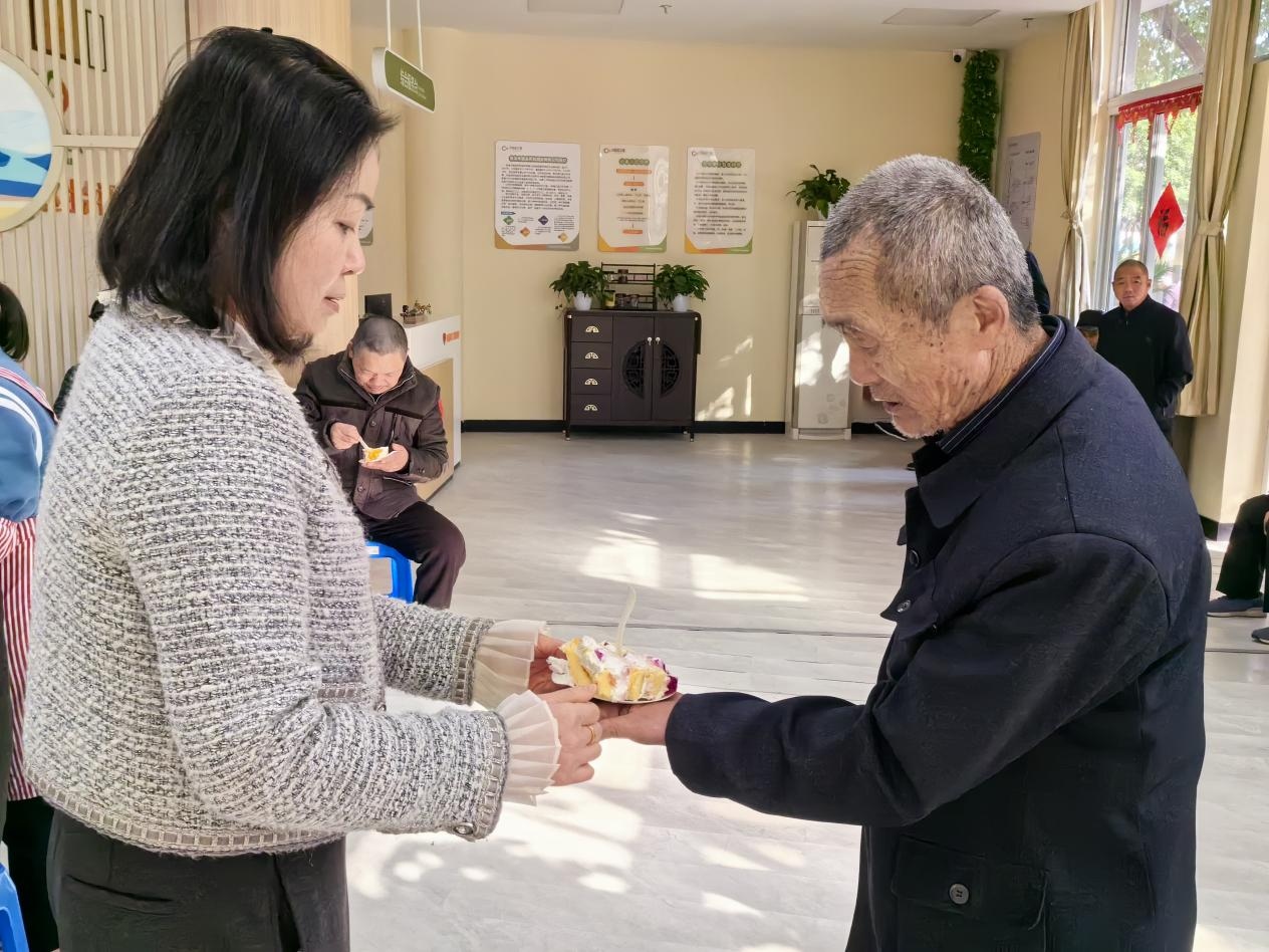 “切蛋糕啦!”——這是最令人期待的環(huán)節(jié)。我們特意定制了適合老年朋友的低糖、松軟的大蛋糕。工作人員細心地將蛋糕分發(fā)給每一位在場的老人。老人們一邊品嘗著甜美的蛋糕,一邊與鄰座的老友閑話家常,時而開懷大笑。這一塊小小的蛋糕,分享的不僅是甜蜜,更是濃濃的鄰里情與大家庭的溫暖。