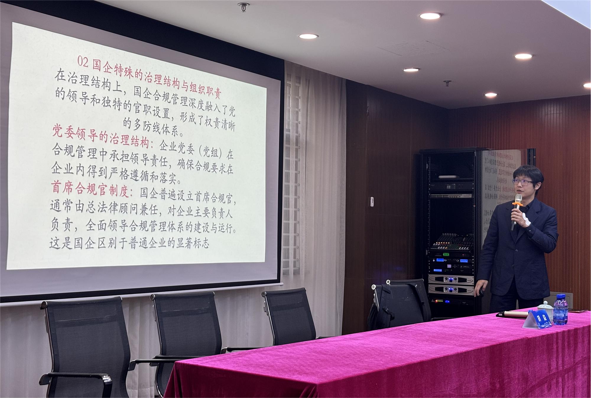 本次培訓(xùn)特別邀請(qǐng)浙江海泰律師事務(wù)所合伙人胡益律師授課。胡律師深耕企業(yè)法律顧問(wèn)、合規(guī)指導(dǎo)、破產(chǎn)重整等領(lǐng)域,兼具法學(xué)與心理學(xué)專業(yè)背景,具有豐富的國(guó)企合規(guī)管理實(shí)戰(zhàn)經(jīng)驗(yàn)。授課過(guò)程中,胡律師圍繞“法治國(guó)企建設(shè)從‘被動(dòng)應(yīng)對(duì)’到‘主動(dòng)駕馭’風(fēng)險(xiǎn)”核心主線,結(jié)合國(guó)企雙重監(jiān)管體系、特殊治理結(jié)構(gòu)屬性,系統(tǒng)拆解了國(guó)企合規(guī)管理的特殊要求,內(nèi)容涵蓋國(guó)有資產(chǎn)保護(hù)、“三重一大”決策程序、關(guān)聯(lián)交易防范、合規(guī)審查嵌入流程、考核問(wèn)責(zé)等重點(diǎn)合規(guī)領(lǐng)域。