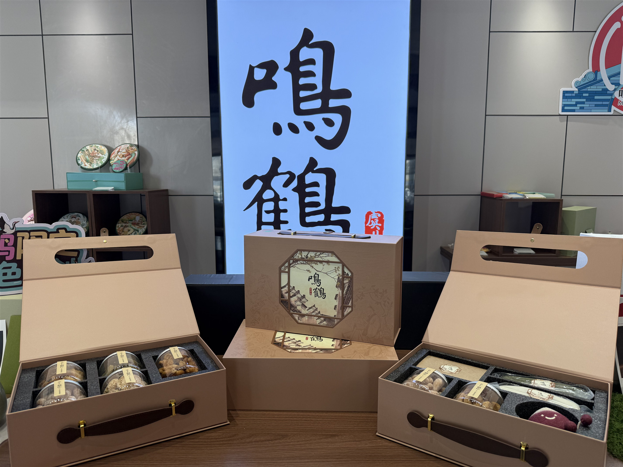 「鶴禮」——以“禮致心意”為核心,打造沉浸式文創體驗。內含鳴鶴古鎮限定手工糕點、非遺水磨年糕、養生茶包與古鎮IP藥方玩偶,每一件單品都承載著地域特色與匠心溫度。
