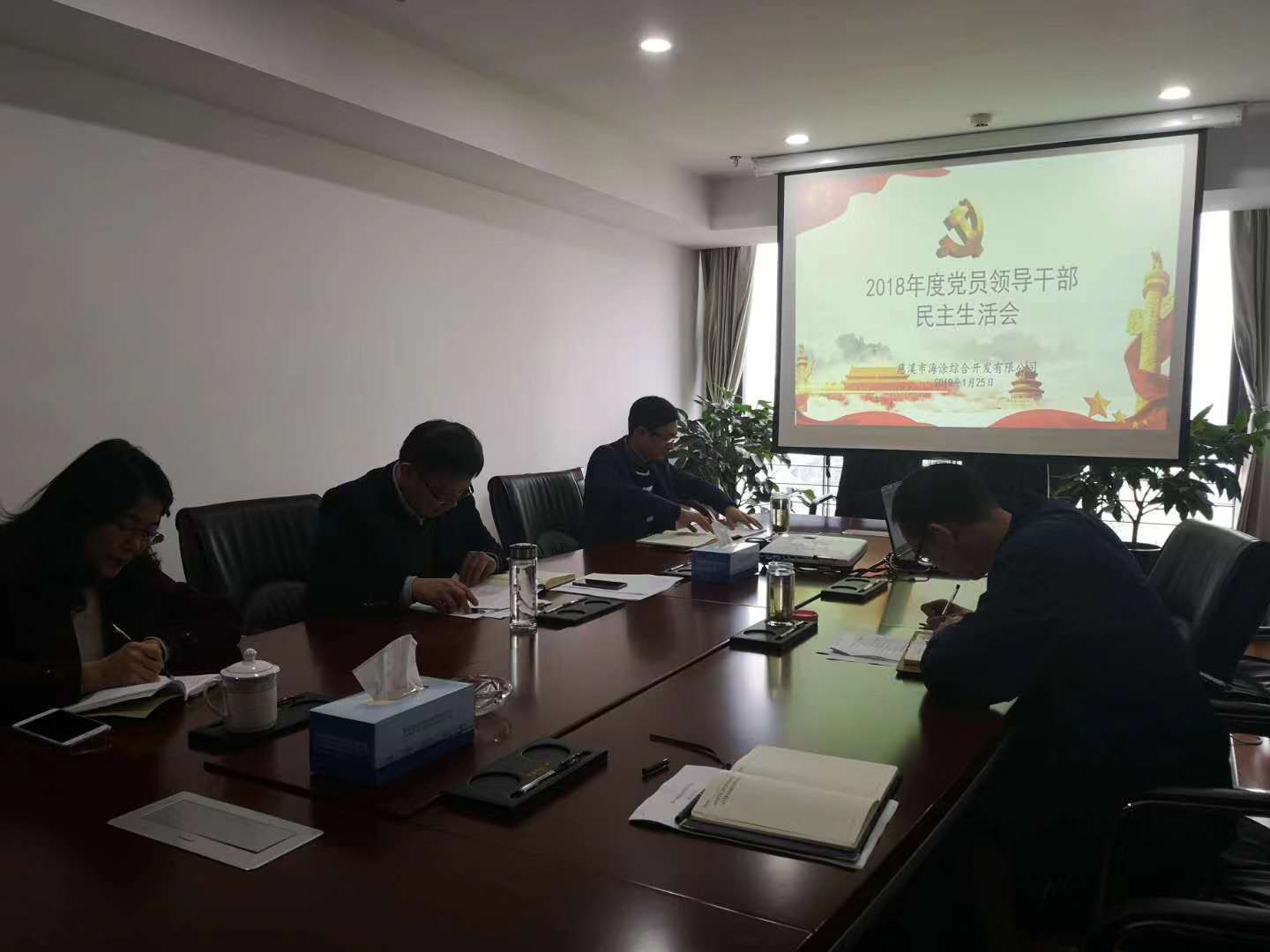 1月25日下午,市海涂公司召開2018年度黨員領導干部民主生活會 。公司黨委書記陳午主持會議,黨委班子成員參加會議。市派駐第五紀檢監察組副組長許雪松到會指導。