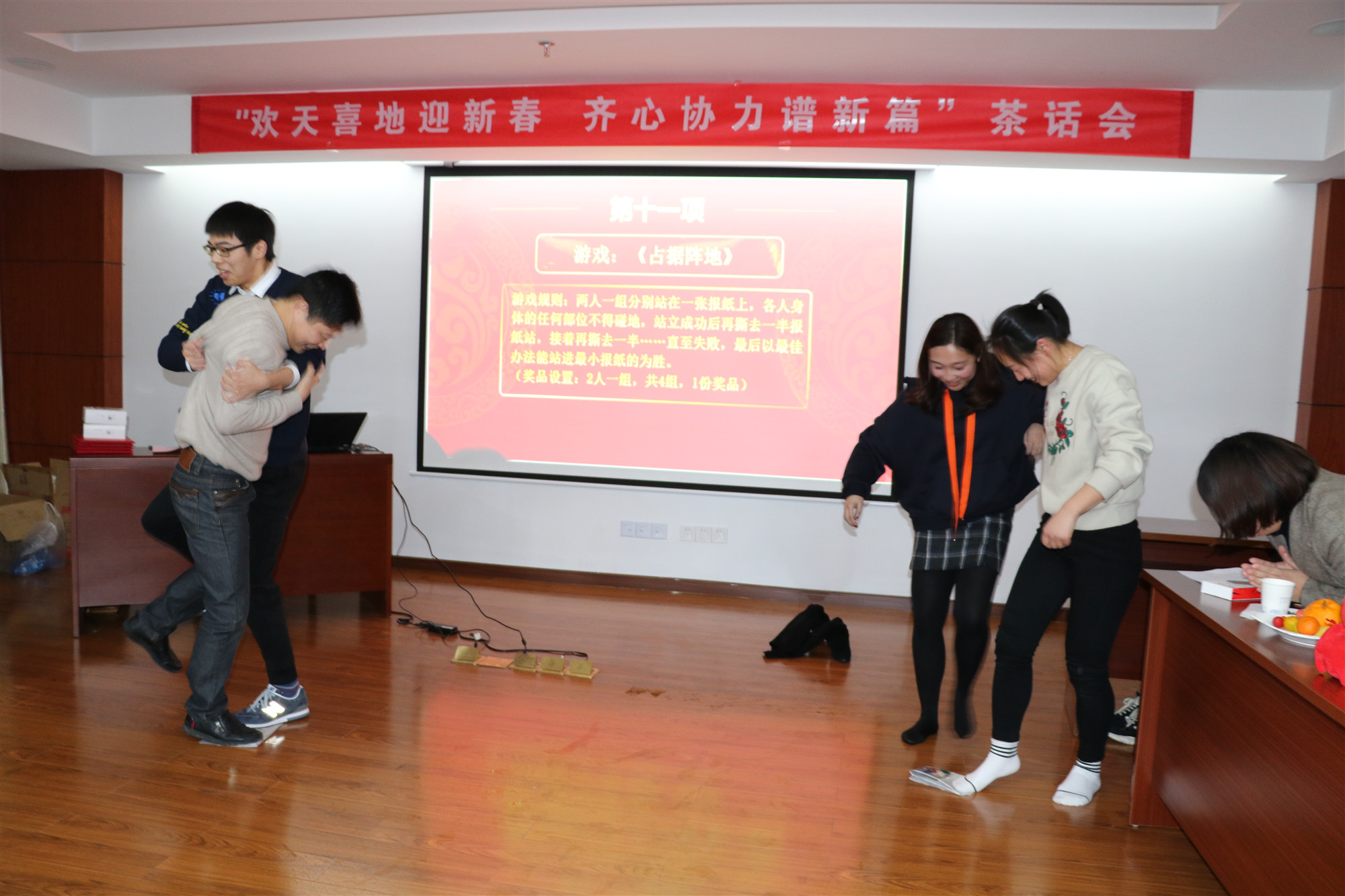 為了豐富公司員工春節(jié)前夕文化生活,增強(qiáng)對中華優(yōu)秀文化傳統(tǒng)的認(rèn)同感,培養(yǎng)全體員工團(tuán)隊合作精神和集體榮譽感,調(diào)節(jié)緊張的工作氣氛,公司于1月30日,在9樓會議室舉行了一臺以“歡天喜地迎新春·齊心協(xié)力譜新篇”為主題的迎新春年會活動。