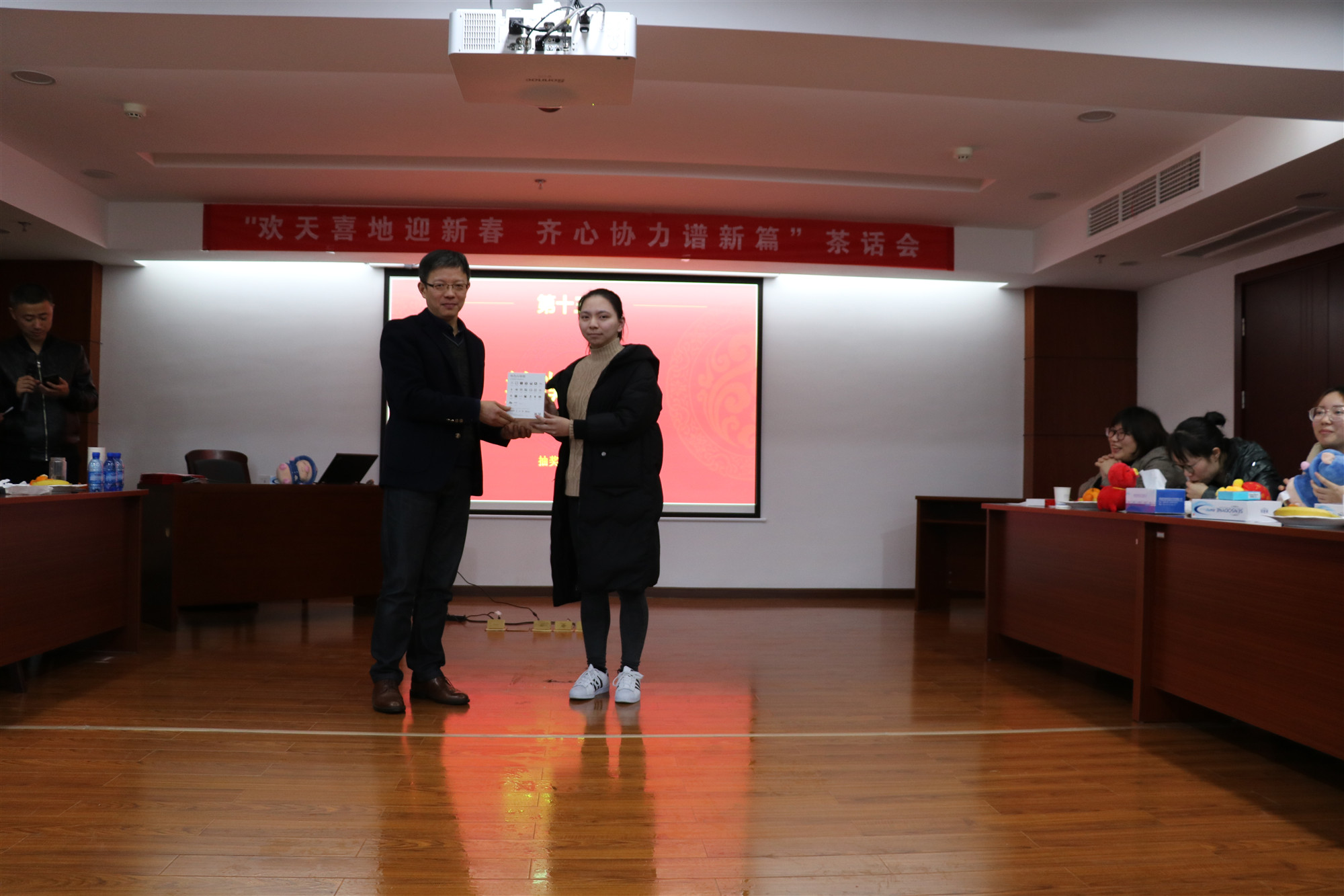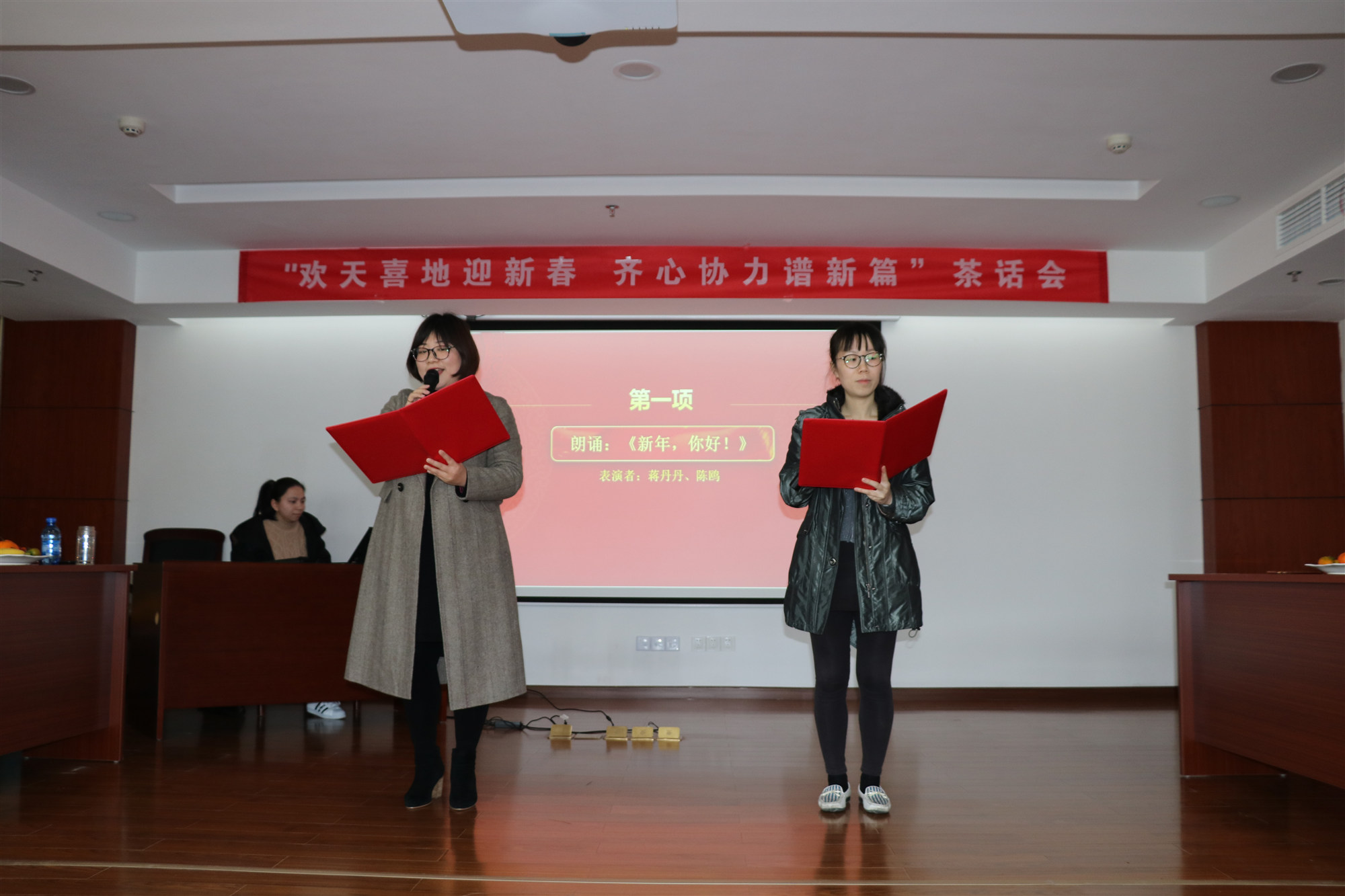 由財務(wù)部蔣丹丹、陳鷗給大家?guī)淼脑娎收b《新年,你好!》,表達(dá)了我們每一位干部職工對公司明天的美好祝愿