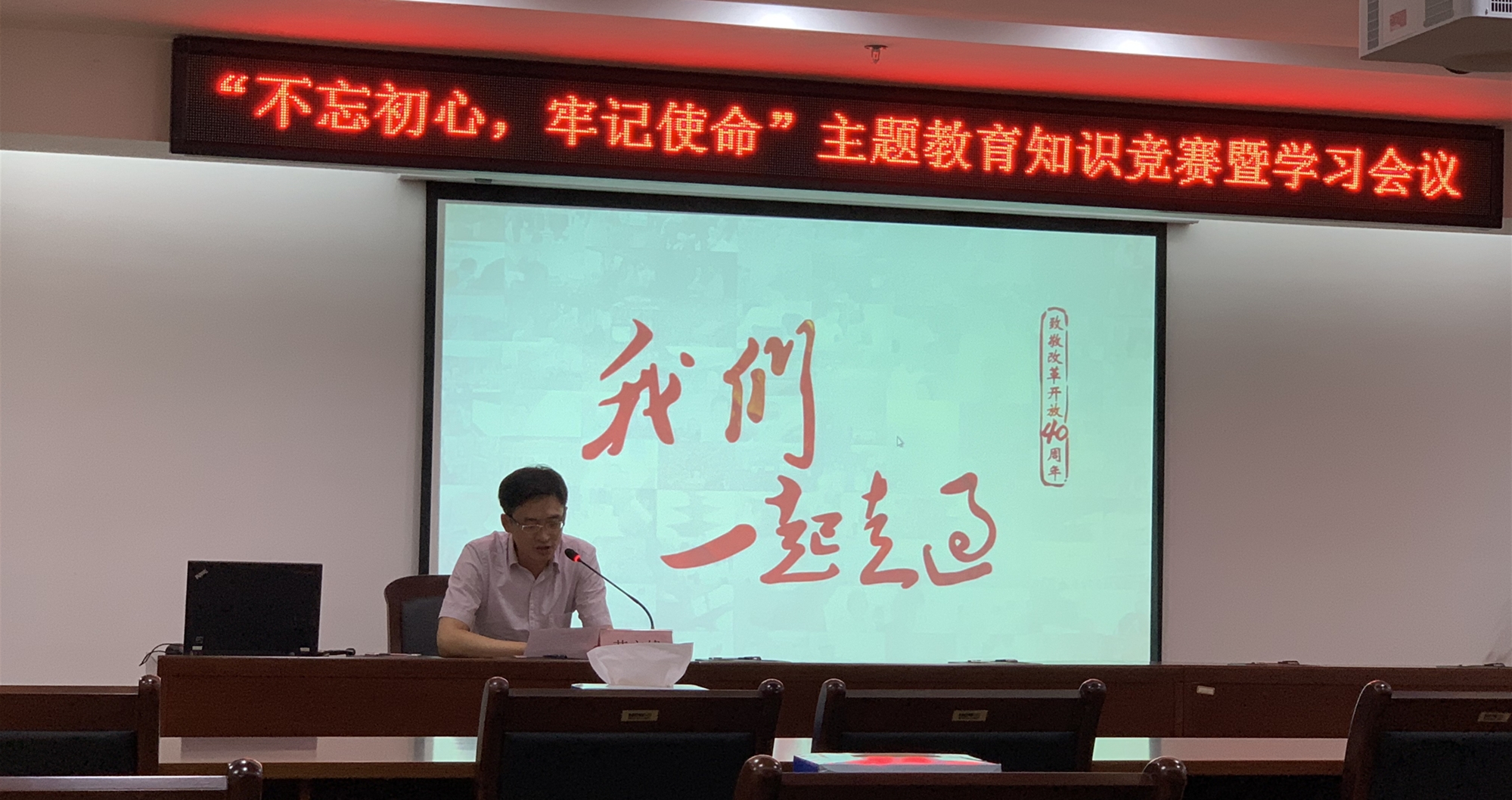 2019年7月24日下午,市海涂公司組織全體工作人員開展“不忘初心,牢記使命”主題教育知識競賽暨學習會議。黨委委員、副總經理勞立峰主持會議。