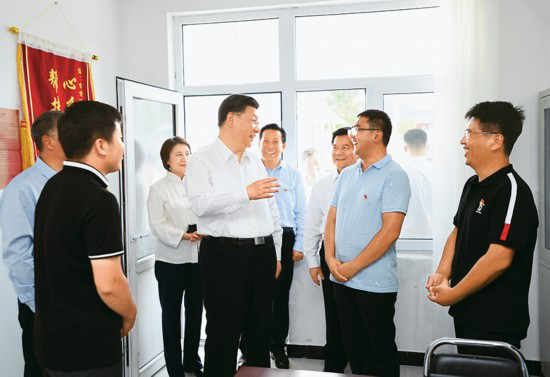 2019年7月15日至16日,中共中央總書記、國(guó)家主席、中央軍委主席習(xí)近平在內(nèi)蒙古考察并指導(dǎo)開展“不忘初心、牢記使命”主題教育。這是15日下午,習(xí)近平在赤峰市喀喇沁旗河南街道馬鞍山村黨群服務(wù)中心了解基層黨建、民族團(tuán)結(jié)和鄉(xiāng)村振興情況。 新華社記者 謝環(huán)馳/攝