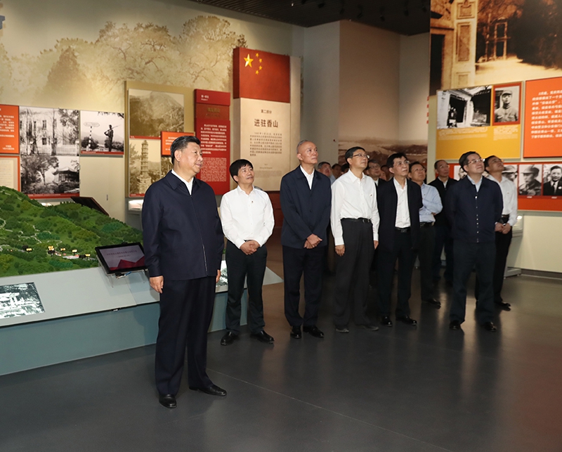 9月12日,中共中央總書記、國家主席、中央軍委主席習近平視察中共中央北京香山革命紀念地。這是習近平在香山革命紀念館參觀《為新中國奠基》主題展覽。