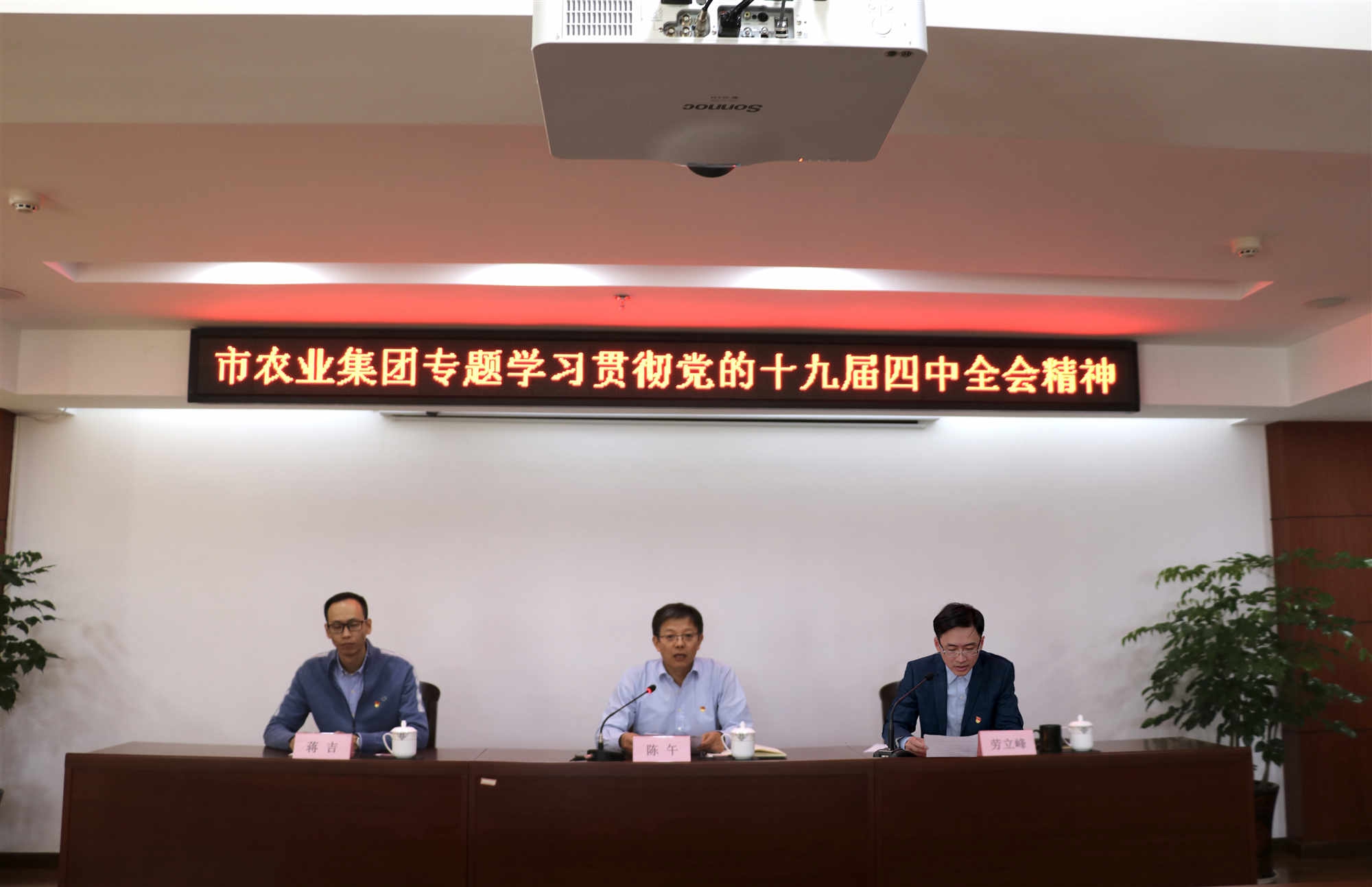 11月14日上午,市農業發展集團召開專題會議深入學習貫徹黨第十九屆四中全會精神,全體干部職工參加。會議由黨委書記陳午同志主持,黨委副書記勞立峰同志就《中共中央關于堅持和完善中國特色社會主義制度、推進國家治理體系和治理能力現代化若干重大問題的決定》進行領學。陳書記圍繞決定稿“起草背景和考慮、起草過程、基本構架”三個方面,對《決定》進行深入解讀。
