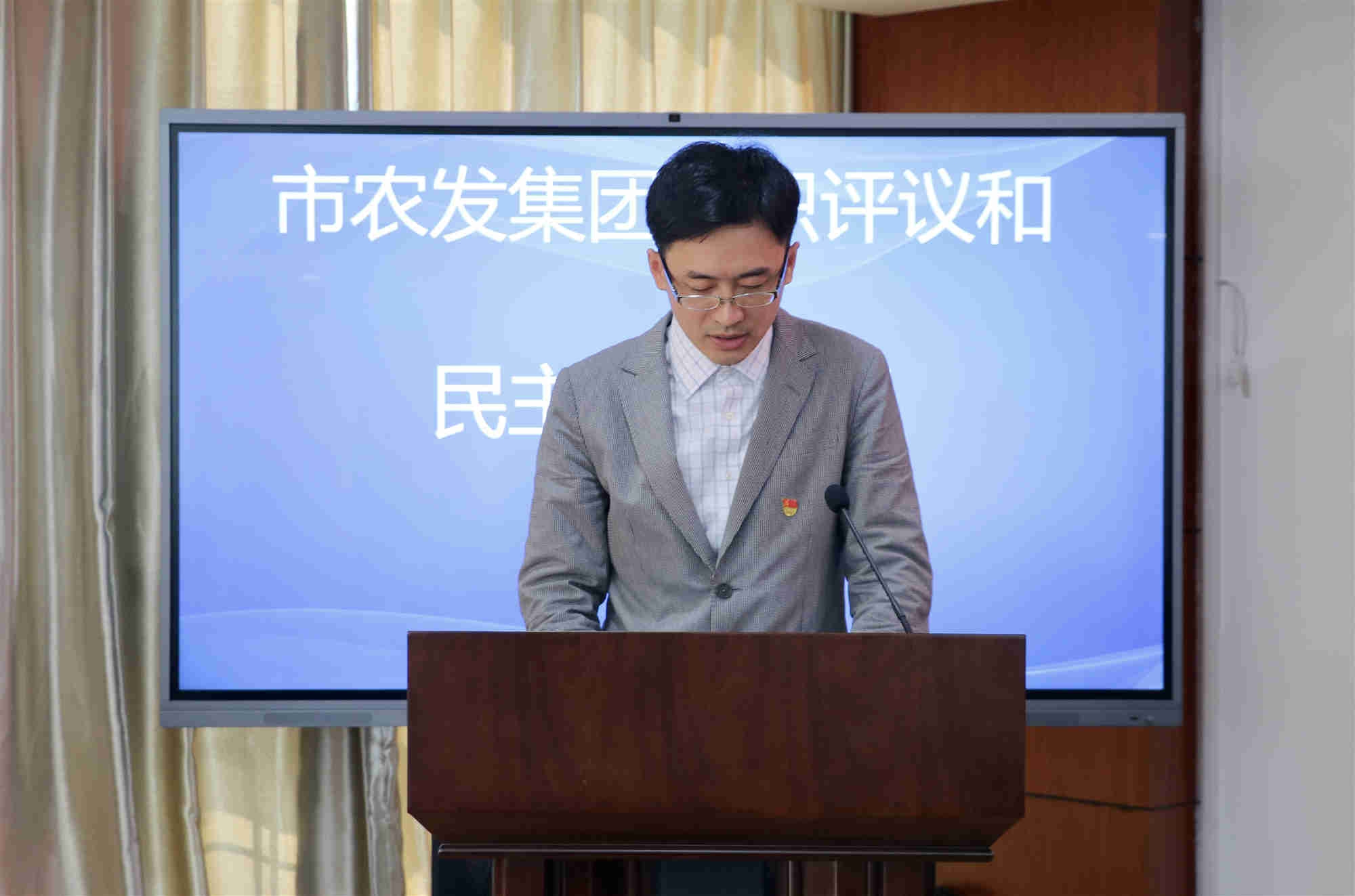 要聞4月10日上午,根據市委組織部工作安排,市農發集團召開述職評議和民主推薦會議。集團全體在編干部職工參加會議。市委組織部正局級干部沈建國、市國資辦副主任孫巧連等4名考察組同志出席。會議由集團黨委書記、董事長、總經理陳午主持。