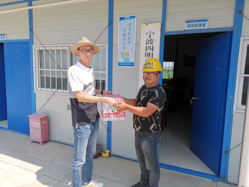 慰問活動中,蔣吉深入各項標段施工現地,對大家堅守一線高溫作業、辛勤奉獻表示由衷的敬意,為他們送上礦泉水、藥品、毛巾等防暑降溫用品,詢問工友們在高溫天氣下的工作及生活狀況,叮囑大家要在高溫天氣注意身體,合理安排作息時間,同時希望各項目部加強項目監督管理,認真落實防暑降溫措施,全面排查安全生產隱患,合理安排作業時間,盡最大努力為工程建設人員創造良好的工作環境。